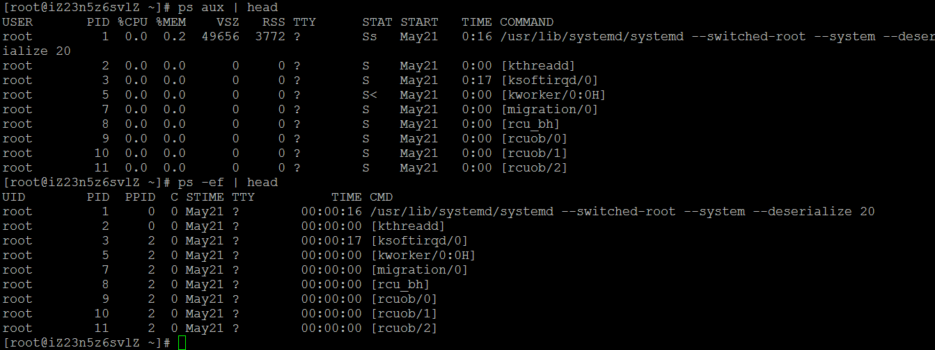 > 这里介绍如何查看进程信息 #ps命令 ps 命令参数极多,一般使用的都是ps -ef 或者ps aux 其中STIME 代表进程启动的时间, TIME 表示进程占用CPU 的时间。  **ps -eo**可以定制ps 输出的内容 pcpu : CPU 占用率 pid : pid ppid : 父进程id pmem : 内存使用率 comm : 可执行文件名 cmd : 简单命令 user : 启动进程的用户 nice : 优先级 time : 累计的CPU时间 etime : 进程启动后度过的时间 tty : 所关联的tty 设备 euid : 有效用户id stat : 进程状态 *** #pstree 命令 显示进程的树形结构  *** #看proc 目录 可参考http://git.kernel.org/cgit/linux/kernel/git/torvalds/linux.git/tree/Documentation/filesystems/proc.txt?id=HEAD ##查看进程打开的文件 ``` ls -l /proc/$pid/fd #这个只看文件描述符 ``` 还可以用命令lsof ``` lsof -p $pid #这个看到很多,包括文件的,内存的等 ``` ##查看进程对CPU 的使用 ``` /proc/$pid/stat 里 第14 15 列分别代表进程在用户态和核心态消耗的cpu时间(单位jiffies) /proc/$pid/stat 里 第16 17 列分别代表进程在等待子进程用户态和核心态消耗的cpu时间(单位jiffies) cat /proc/$pid/stat | awk '{print $14" + "$15" + "$16" + "$17}' | bc /proc/stat 第一行是系统cpu 消耗的cpu时间(单位jiffies) cat /proc/stat | head -n 1| sed -e 's/cpu *//g' -e 's/ *$//g' -e 's/ */+/g' | bc ``` ##查看进程IO 需要内核版本大于2.6.20 ``` [root@test ~]# cat /proc/$pid/io rchar: 2012 #读的字节总数 wchar: 0 #写的字节总数 syscr: 7 #调用读的systemcall 的次数 syscw: 0 #调用写的systemcall 的次数 read_bytes: 0 #实际从磁盘读出来的字节数 write_bytes: 0 #实际往磁盘写的字节数 cancelled_write_bytes: 0 #应该写而没有写的字节数(比如要写的文件最后被删了,就不写了) ``` 还可以用命令iotop ``` iotop -p $pid ``` ##查看进程的环境变量 ``` cat /proc/$pid/environ ``` ##查看进程的线程 ``` ls /proc/$pid/task ``` ##查看命令行参数 ``` cat /proc/$pid/cmdline ``` ##查看内存map ``` cat /proc/$pid/maps ```